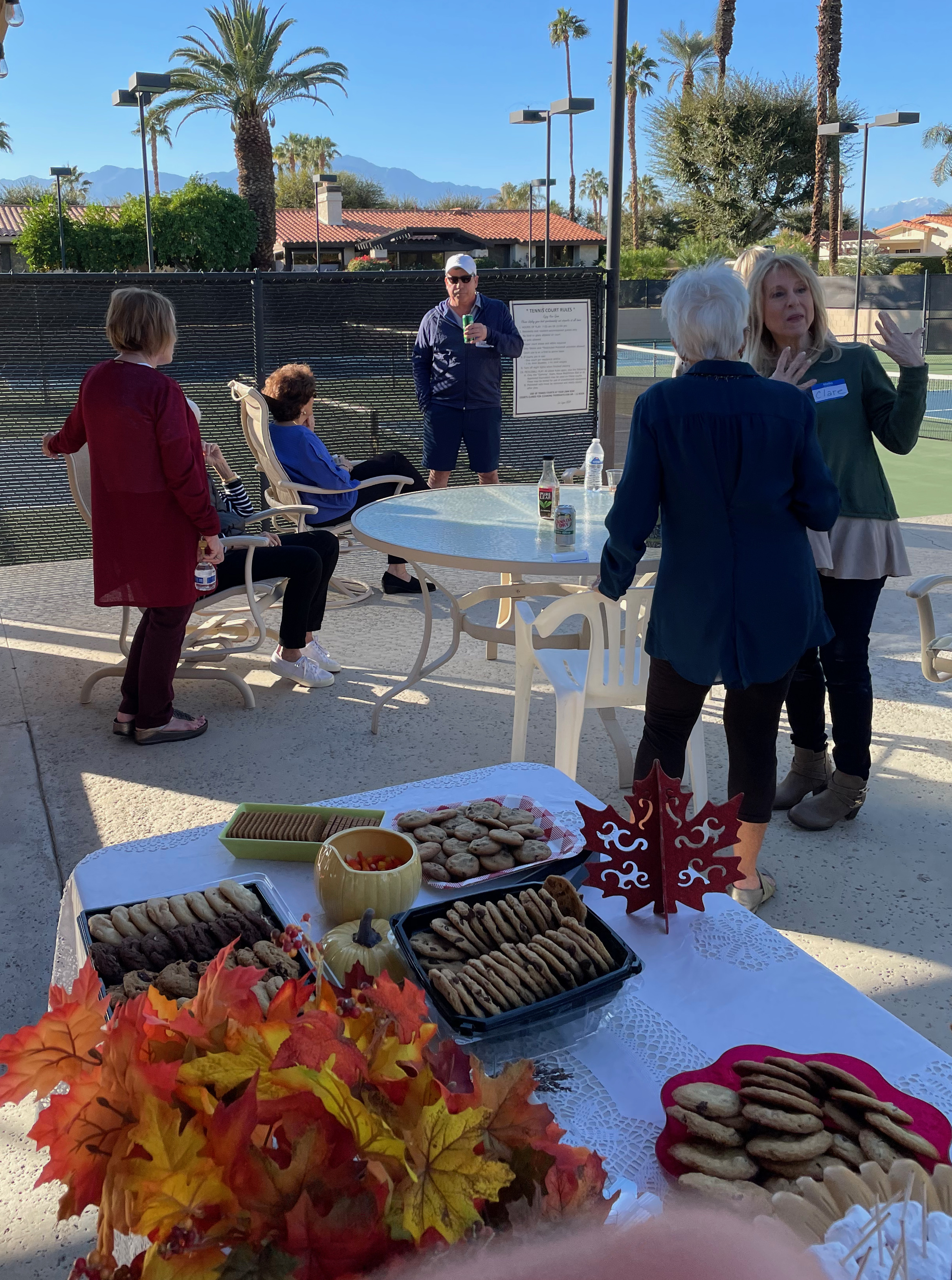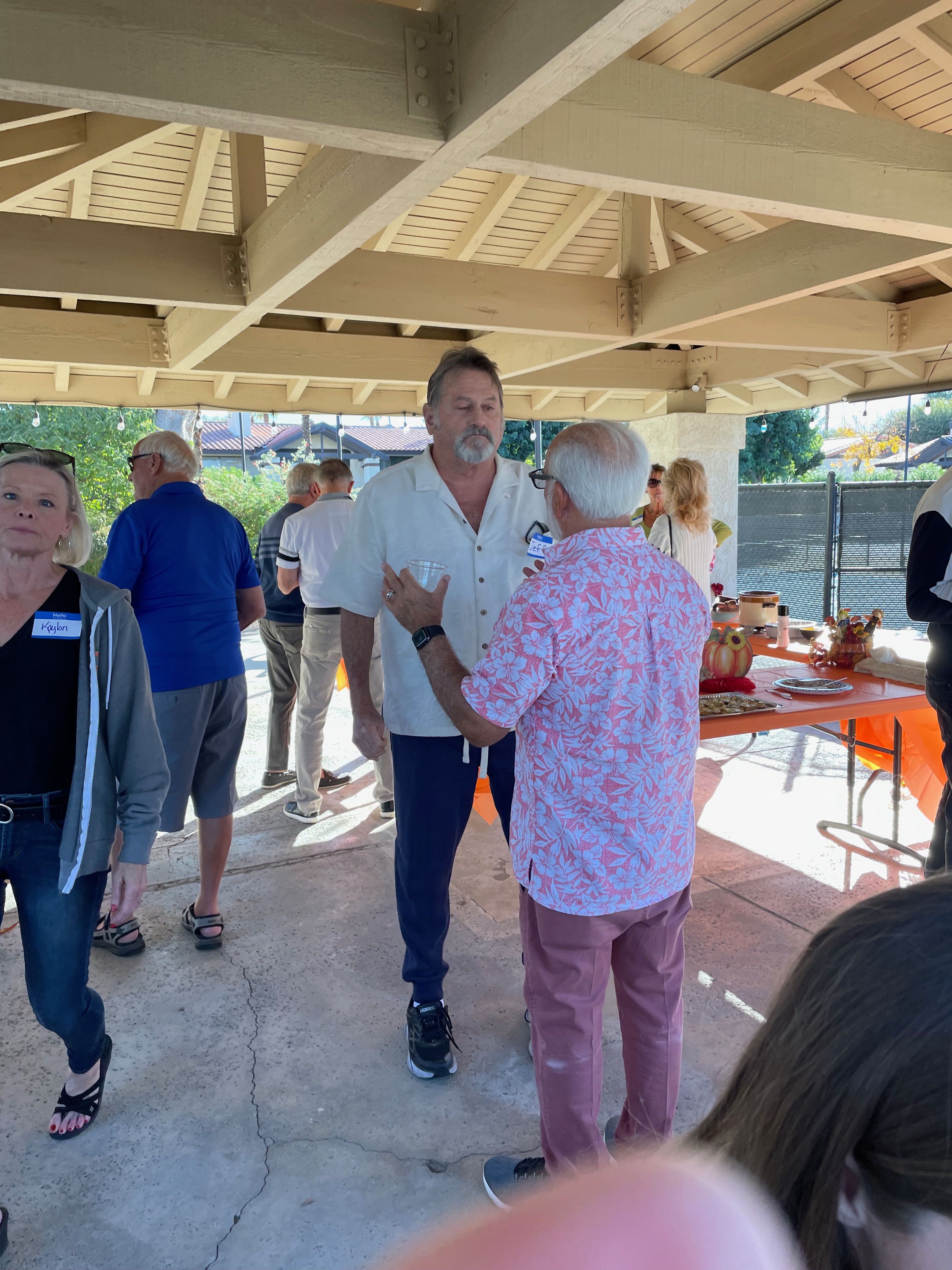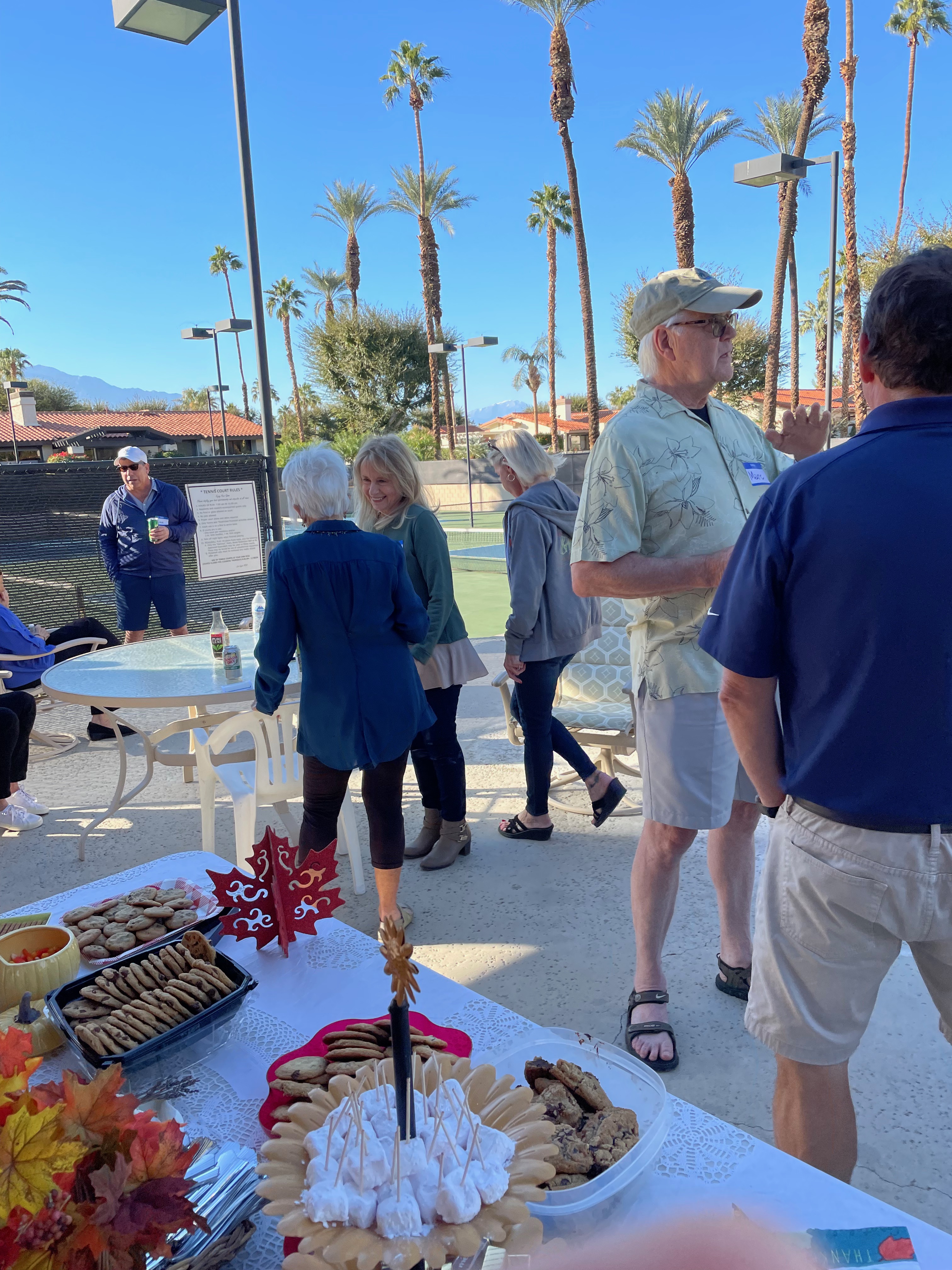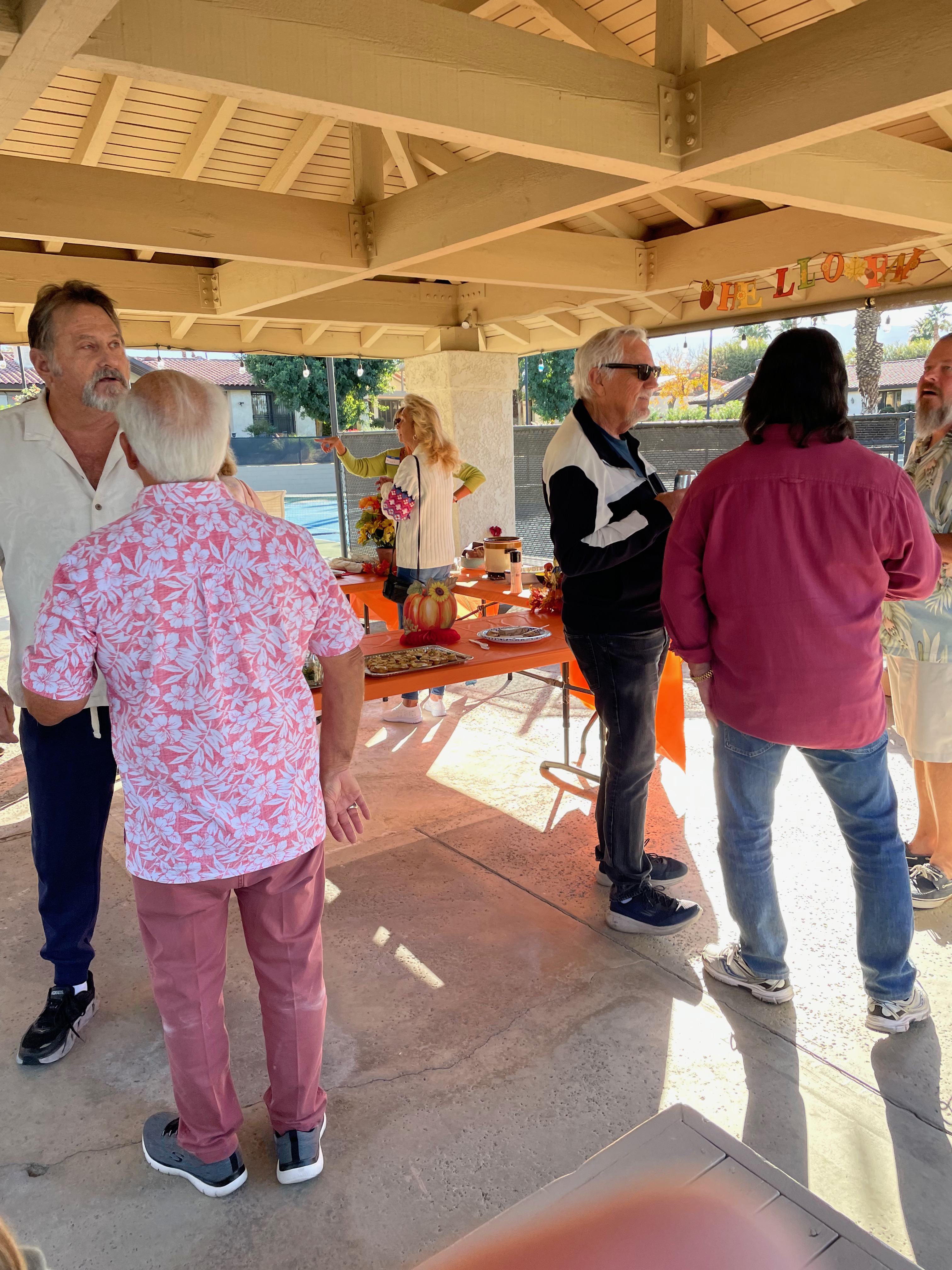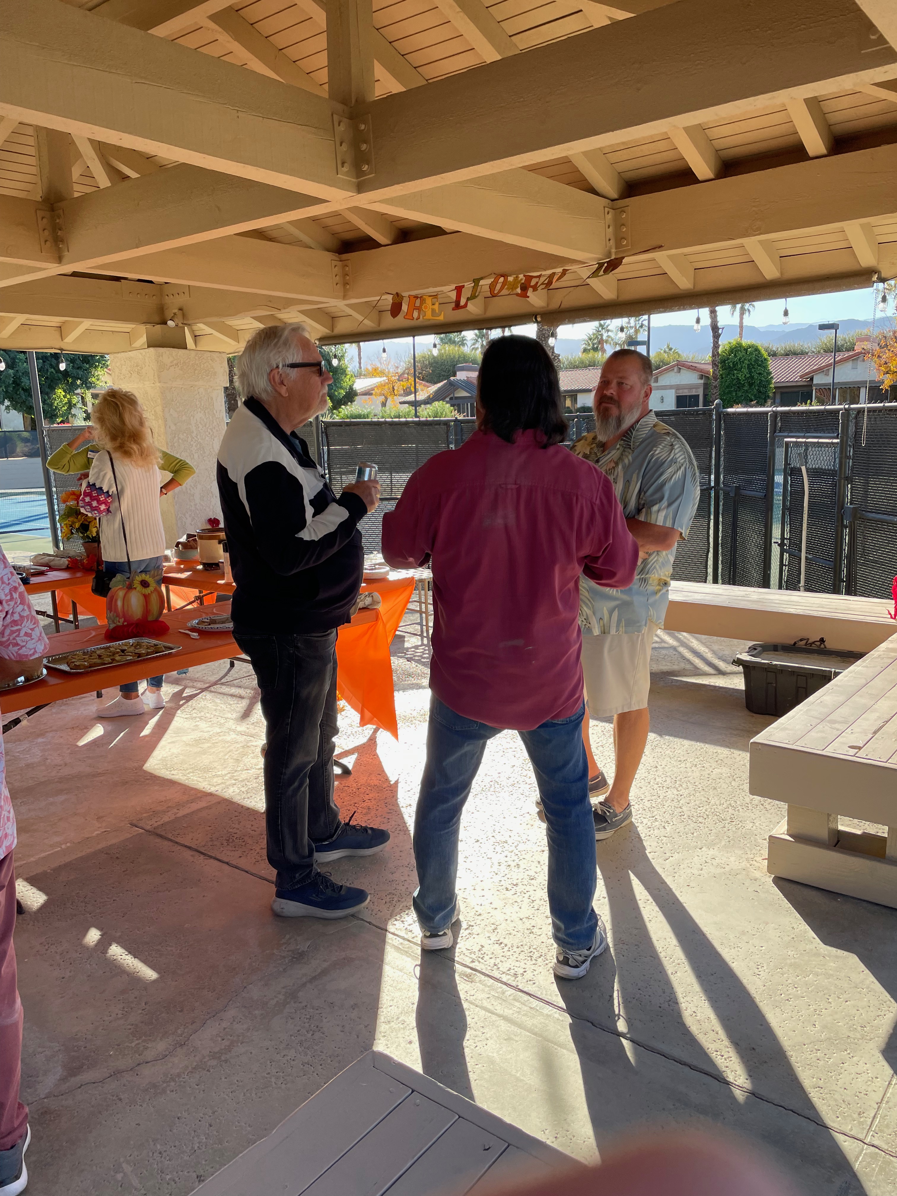 At the Pavilion at the Los Lagos Tennis Courts. Lots of new neighbors attended, plus old neighbors we rarely see. Good food and drink. Thanks to the social committee for organizing the party. Thanks also to all those who helped set up and clean up after the party – they helped make the party a success. Thanks too to those who donated to pay for the beverages and serving ware.